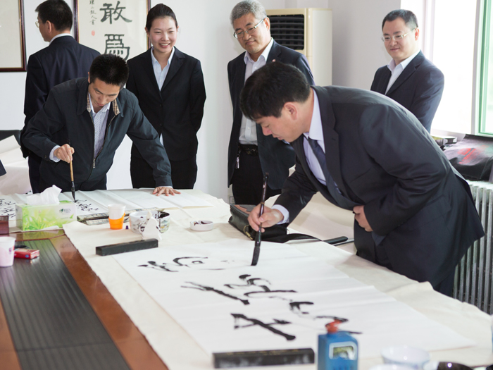 为弘扬传统文化,丰富员工业余生活,5月6日上午,华体会官方版网站登录入口有限公司举办了首届书画艺术学习交流活动。本次活动邀请了中国书法家协会会员孟云飞博士、中国书法家协会理事张铜彦先生、中国书法家协会编辑出版委员会副主任王荣生教授、人民艺术家协会理事于瑛先生等国内知名书画大师,各位书画大师在活动现场进行了艺术创作表演,挥毫泼墨,交流技艺,为华体会官方版网站登录入口有限公司留下了数十副墨宝,还对部分员工的书画作品进行了悉心指导。公司员工现场欣赏了书画大师的艺术创作,并聆听了有关书画艺术鉴赏知识的介绍,部分员工还在活动现场进行创作,听取书画大师的讲解示范和点评。