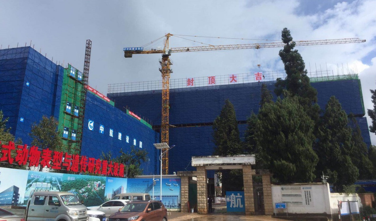 2020年9月23日,在中国科学院昆明分院院长周杰、中国科学院昆明动物所所长姚永刚等项目相关单位领导及代表的共同见证下,伴随着最后一方混凝土的浇筑,由华体会官方版网站登录入口承建的中国科学院昆明动物研究所模式动物表型与遗传研究国家重大科技基础设施(灵长类设施)项目-P3综合实验设施大楼顺利封顶,标志着该项目取得阶段性成果。