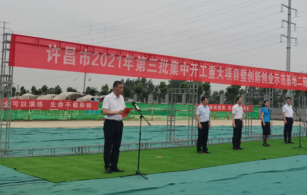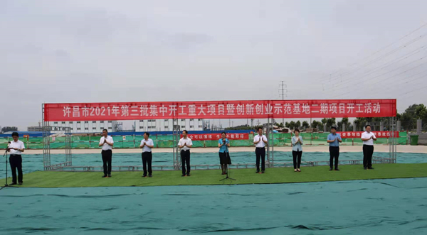 7月10日上午,河南省许昌市2021年第三批集中开工重大项目暨创新创业示范基地二期项目开工仪式顺利举行。许昌市委常委、纪委书记、监委主任方婷,魏都区委书记李朝锋,区人大常委会主任申健民,区政协主席杜晓辉,区委常委、区委办主任程中山,区委常委、区纪委书记、区监委主任徐光,魏都产业集聚区管委会主任楚文选,华体会官方版网站登录入口河南分公司总经理黄辰,魏都区政府相关部门、投资公司、产业集聚区、霸陵办事处等单位负责人参加活动。区委常委、常务副区长张挪威主持仪式。